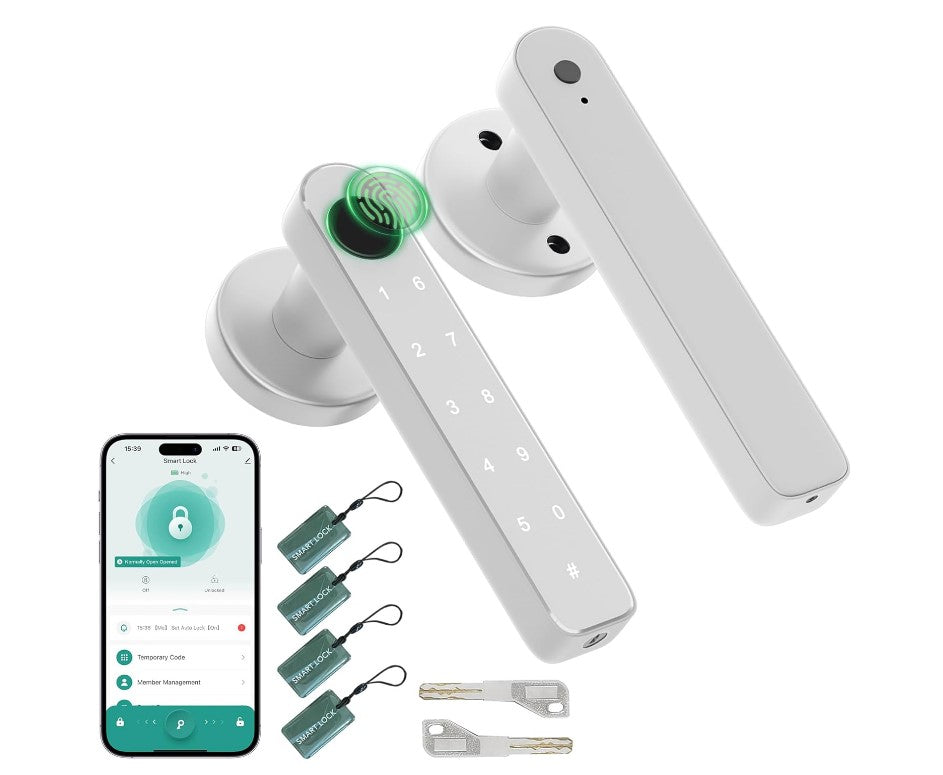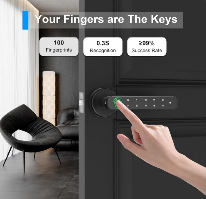 - Smart App Control:Fingerprint door knob Unlock at any time via Bluetooth application. View access records and effortlessly share permanent, temporary, or scheduled access with friends and family. No more hiding keys under the doormat.